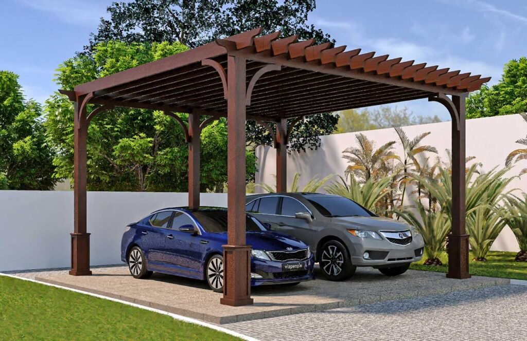 Durable wooden and steel parking shade structures that provide strong weather protection and enhance the exterior look of residential and commercial spaces.